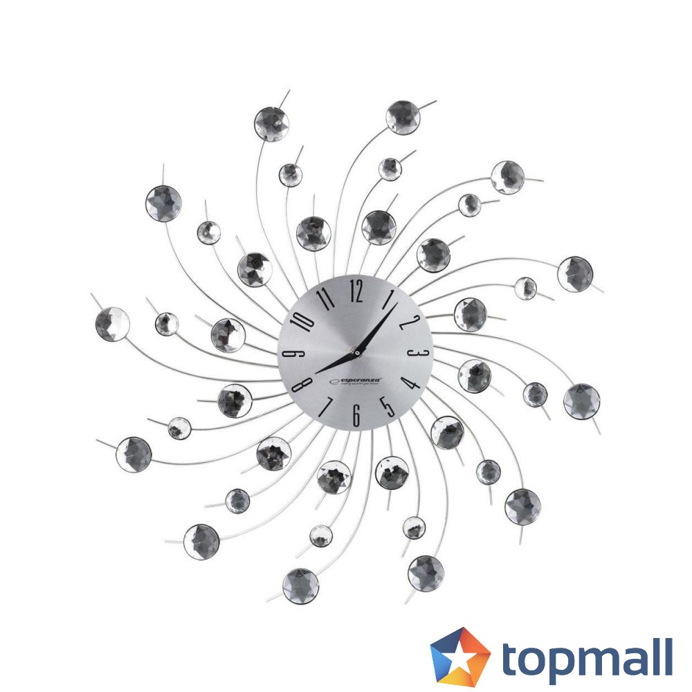 Оценете:Стенен часовник Esperanza Geneva EHC004, 50 см, Кристални елементи, Сребрист, (9999EHC004)