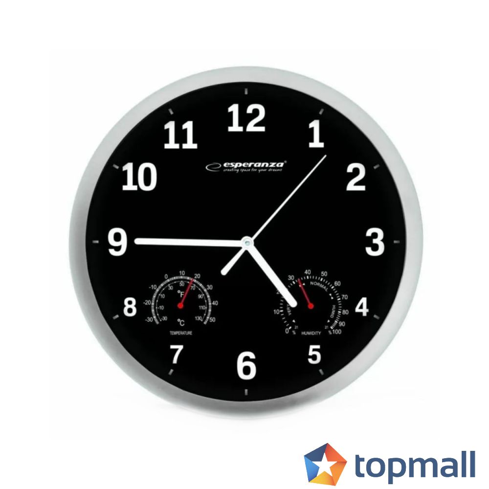 Стенен часовник Esperanza Lyon EHC016K, 25 см, Влагомер, Термометър, Черен, (999EHC016K)