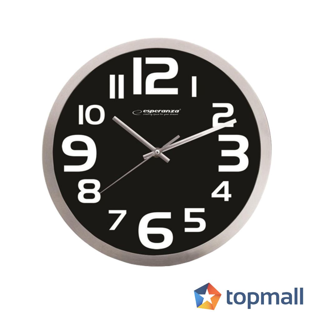 Стенен часовник Esperanza Zurich EHC013K, 25см., Големи цифри, Кварц, Черен, (12819)