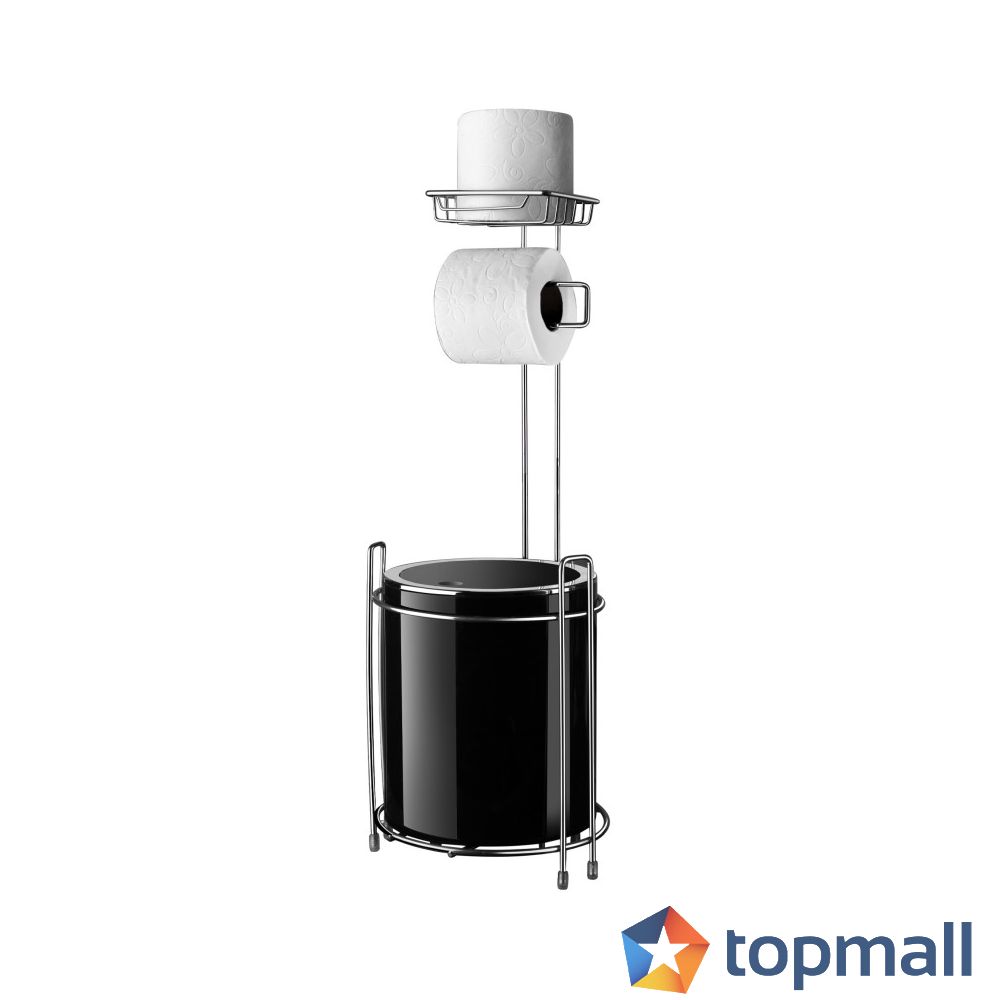 Оценете:Стойка за тоалетна с кош Metalife AKB-755S, 5 литра, 63х21 см, Тоалетна хартия, Черен/хром, (12857)