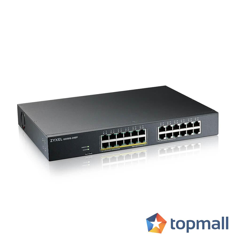 Суич ZyXEL GS1915-24EP, 24-портов, Gigabit, Управляем, Монтаж в шкаф, PoE, (35935799)