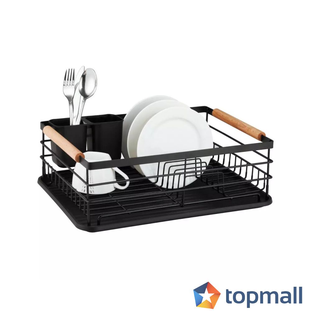 Сушилник за съдове Kinghoff KH 1728, Поставки за прибори, Дървени дръжки, Черен, (12958)