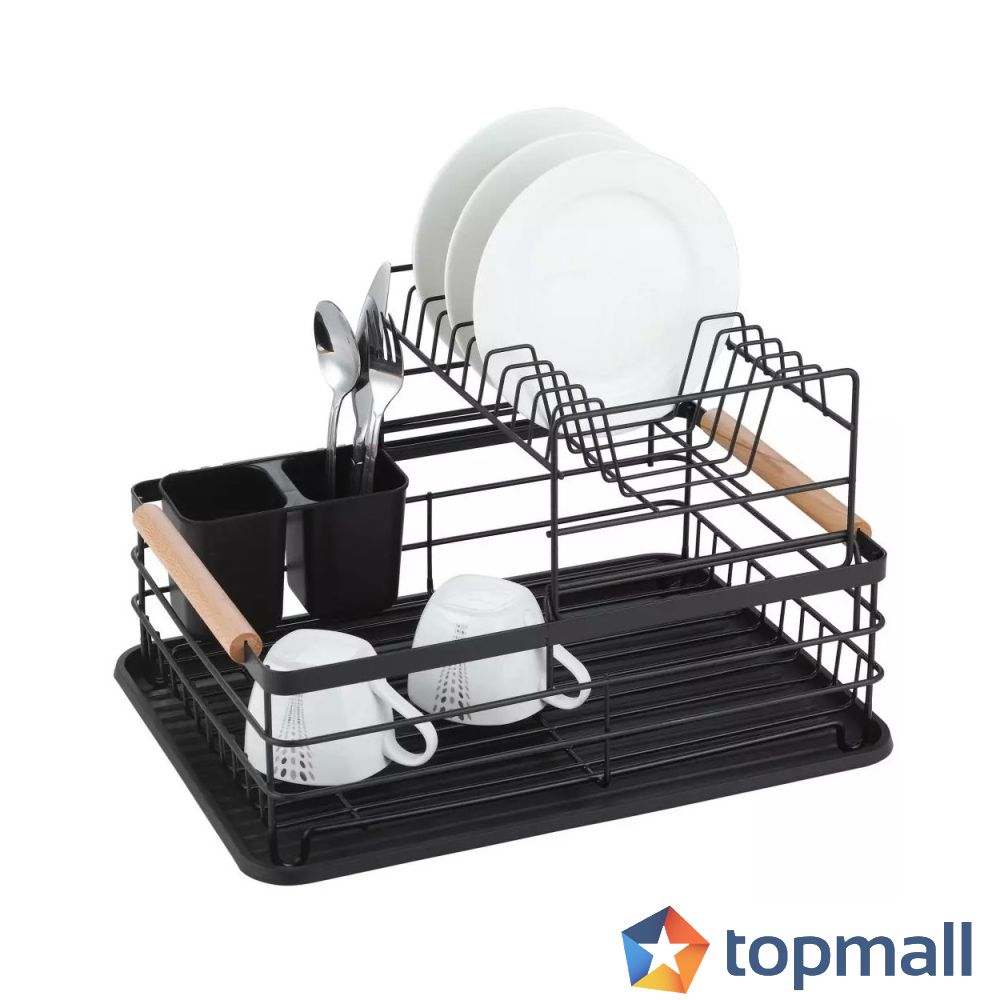 Сушилникът е в стилен черен цвят, който придава приятен вид на кухнята ви. Неговият минималистичен дизайн го прави лесно вписващ се в различни интериорни стилове. Продуктът разполага с две нива, които ви позволяват да подредите съдове и прибори по оптимален начин, без да заемат много място. Така ще имате достатъчно пространство за сушене на големи количества посуда. Оборудван с удобна поставка за прибори, където можете да подредите лъжици, вилици, ножове и други малки кухненски инструменти. Това ви позволява да ги подсушите ефективно и да ги съхранявате на удобно място.