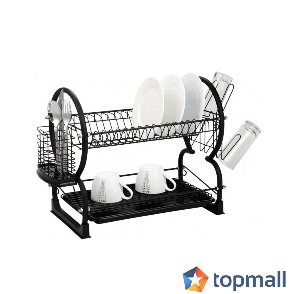 Сушилник за съдове на 2 нива Kinghoff KH 1500, 56.5 cm, Приставки за чаши и прибори, Черен, (9999KH1500)