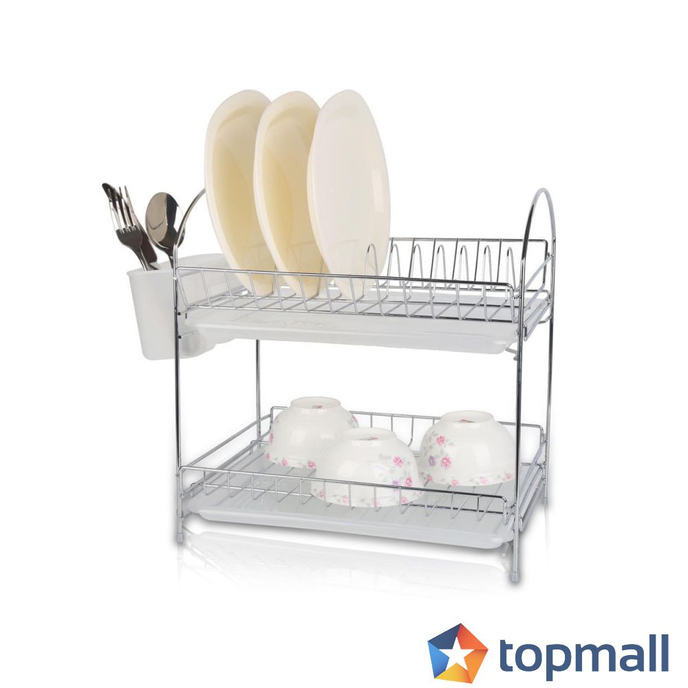 Сушилник за съдове Rosberg R53000E, 34 см, С 2 тави, Поставка за прибори, Хром, (555R53000E)