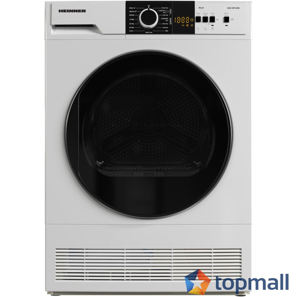 Сушилня Heinner HCD-V8T1CHB, Кондензация, 8 кг, 15 програми, Клас B, LED дисплей, Светлина в барабана, Индикатор за почистване на филтъра за мъх, Заключване за деца, Бял , (17868)