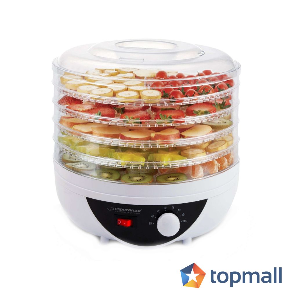 Сушилня за плодове и зеленчуци Esperanza EKD002, 250W, 5 нива, 35-70C, Вентилатор, Термостат, Бял, (9999EKD002)