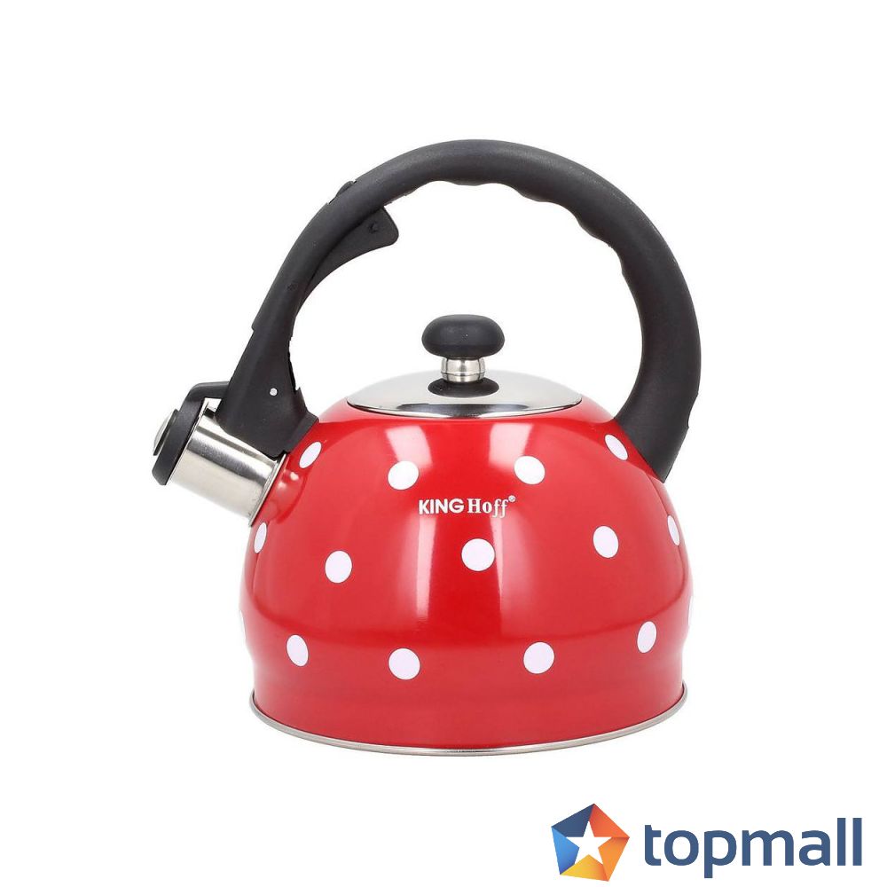 Свирещ чайник Kinghoff KH 1049, 2 литра, Топлоизолирана дръжка, Индукция, Червен на бели точки, (9999KH1049)