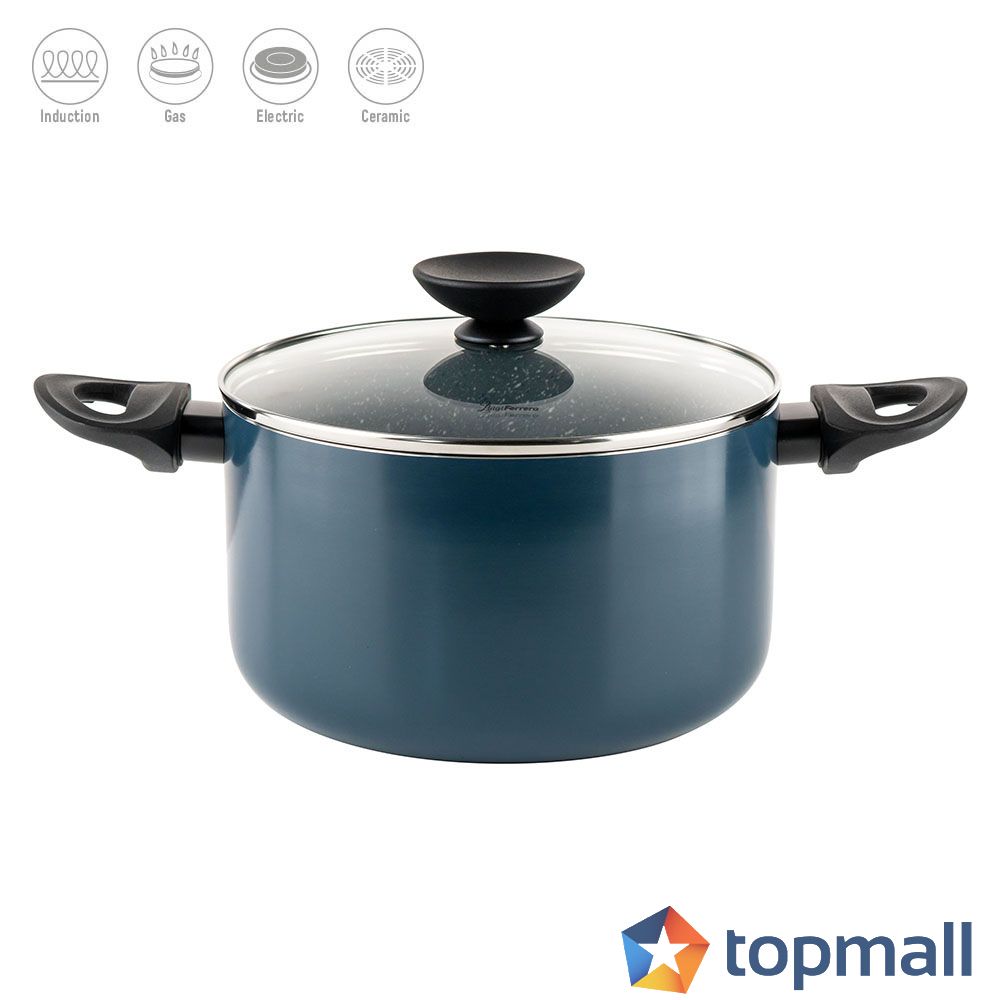 Висококачествен пресован алуминий за оптимална топлопроводимост Дебелина - 2.5мм Незалепващо покритие с мраморен ефект Походящ за електрически, газови, стъклокерамични, халогенни и индукционни котлони Подходящ за съдомиялна машина