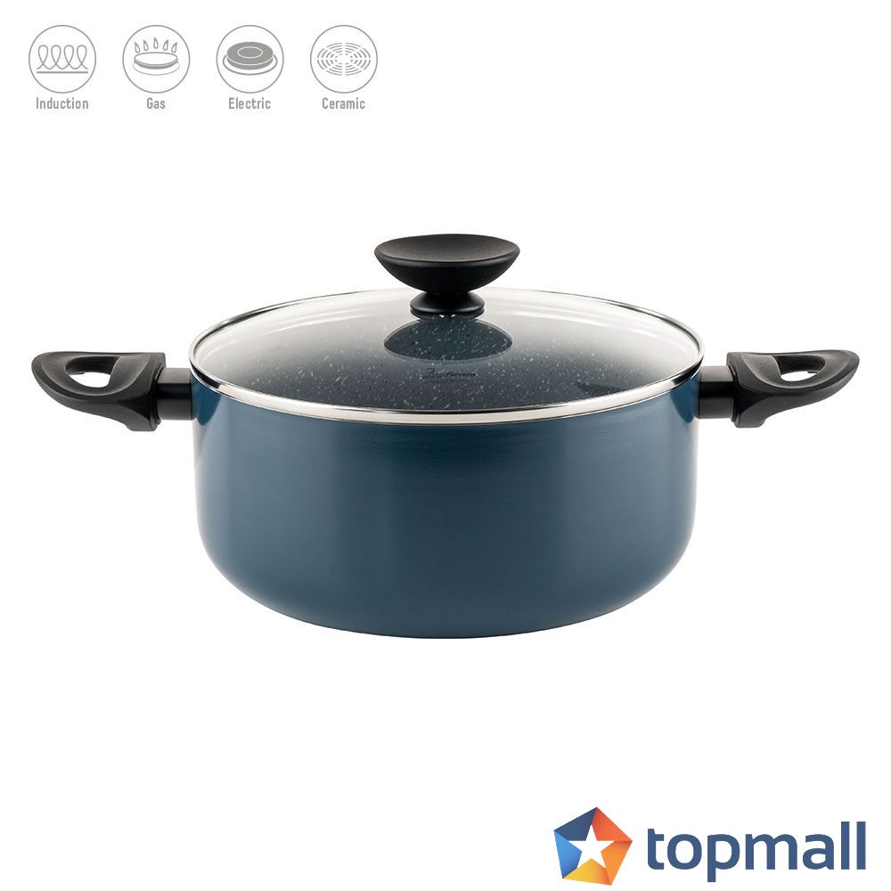 Висококачествен пресован алуминий за оптимална топлопроводимост Дебелина - 2.5мм Незалепващо покритие с мраморен ефект Походящ за електрически, газови, стъклокерамични, халогенни и индукционни котлони Подходящ за съдомиялна машина
