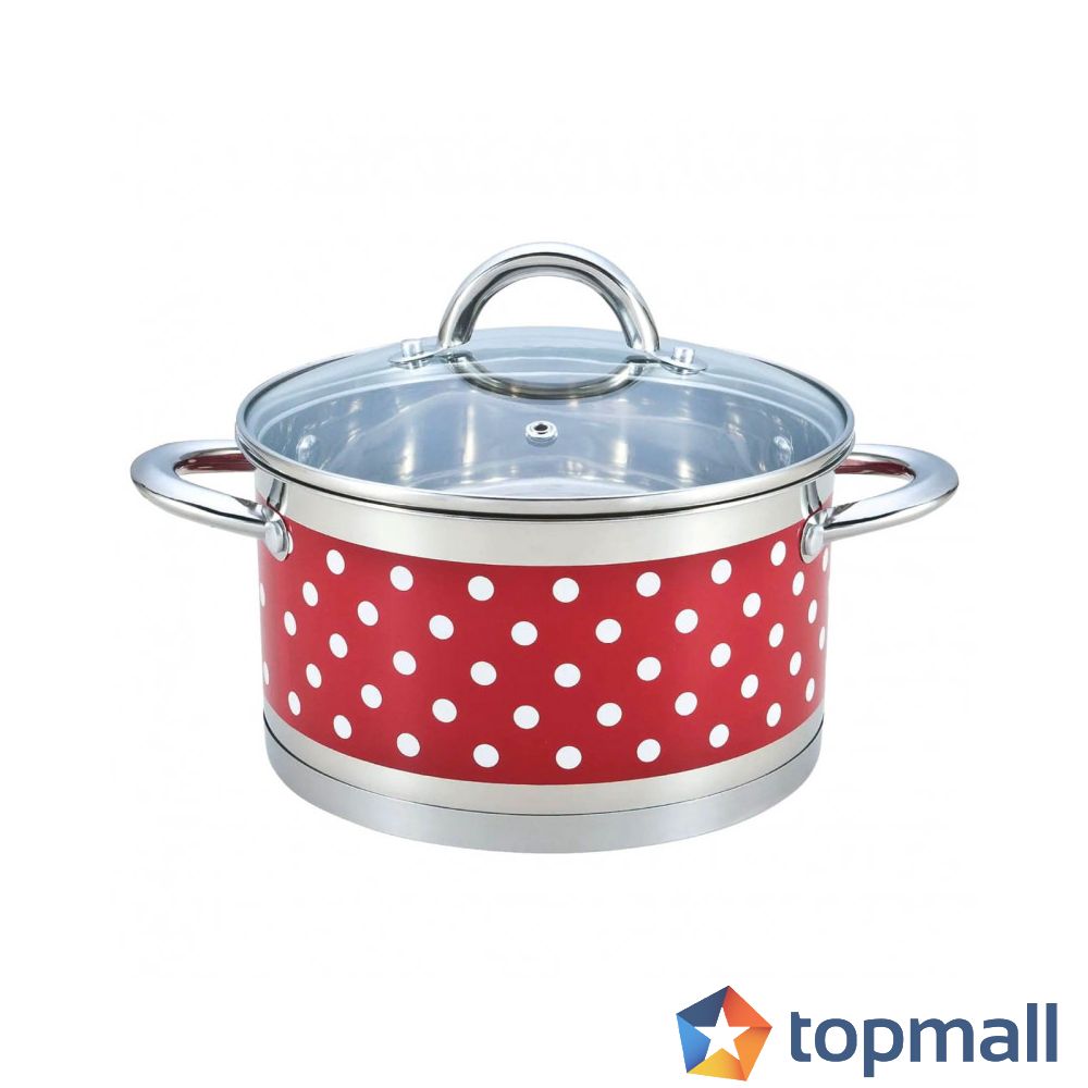 Тенджера Rosberg R51210I22, 22 см, 4.7 литра, Двойно дъно, Индукция, Инокс/червен с бели точки, (14656)