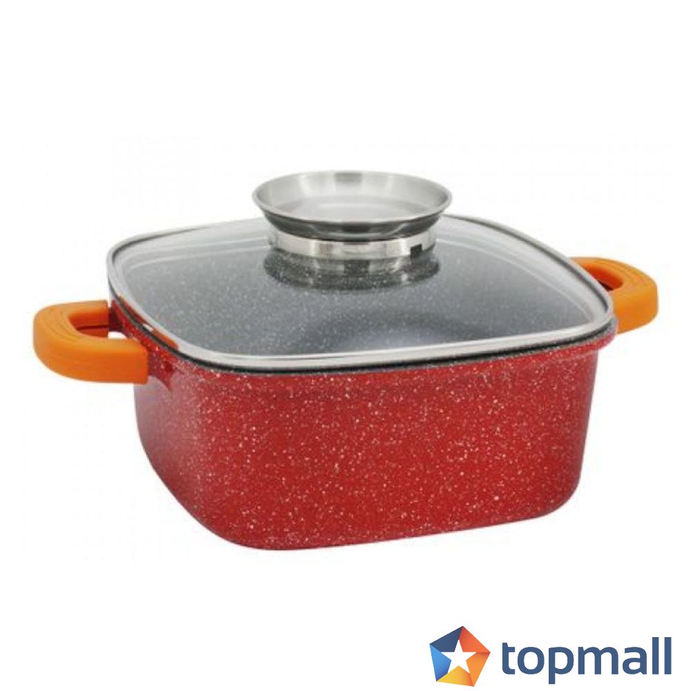 Тенджера с дозатор за мазнина ZEPHYR Red Passion ZP 4323 EM28A, 6.5 литра, 28х28 см, Ръкохватки, Мраморно покритие, Индукция, Червен, (18238)