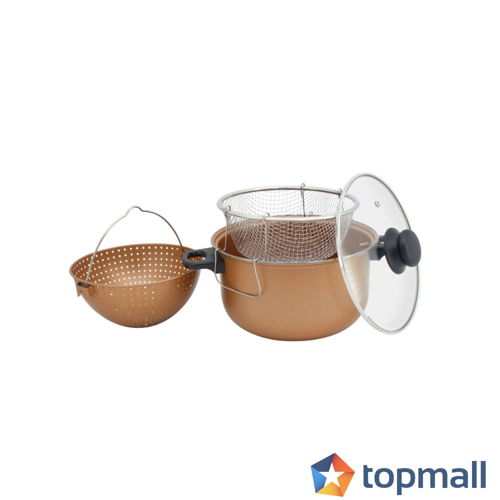 Оценете:Тенджера с гевгир и кошница за пържене Voltz V51213C, 24 см, 5.2 л, Незалепващо покритие, Меден цвят, (17610)