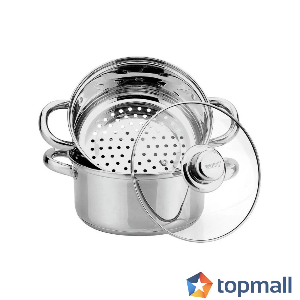 Тенджера за готвене на пара Kinghoff KH 3315, 18 см, 2.5 литра, 3 части, Индукция, Инокс, (14641)