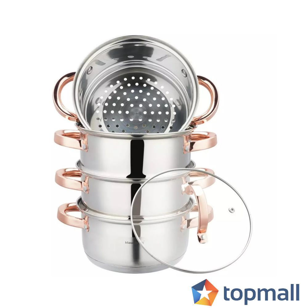 Тенджера за готвене на пара Klausberg KB 7727, 18 см, 2.5 литра, 5 части, Индукция, Инокс/Розово злато, (22201)