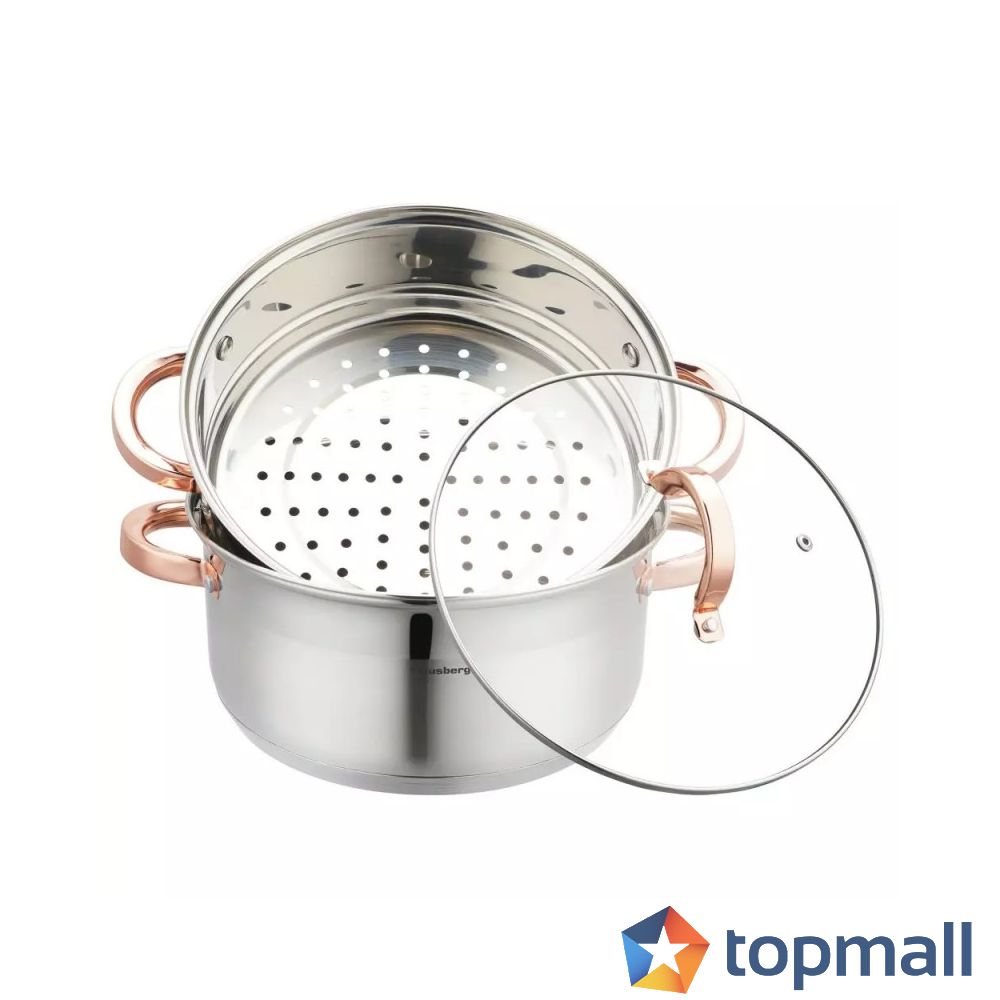 Тенджера за готвене на пара Klausberg KB 7734, 24 см, 5 литра, 3 части, Индукция, Инокс/Розово злато, (22195)