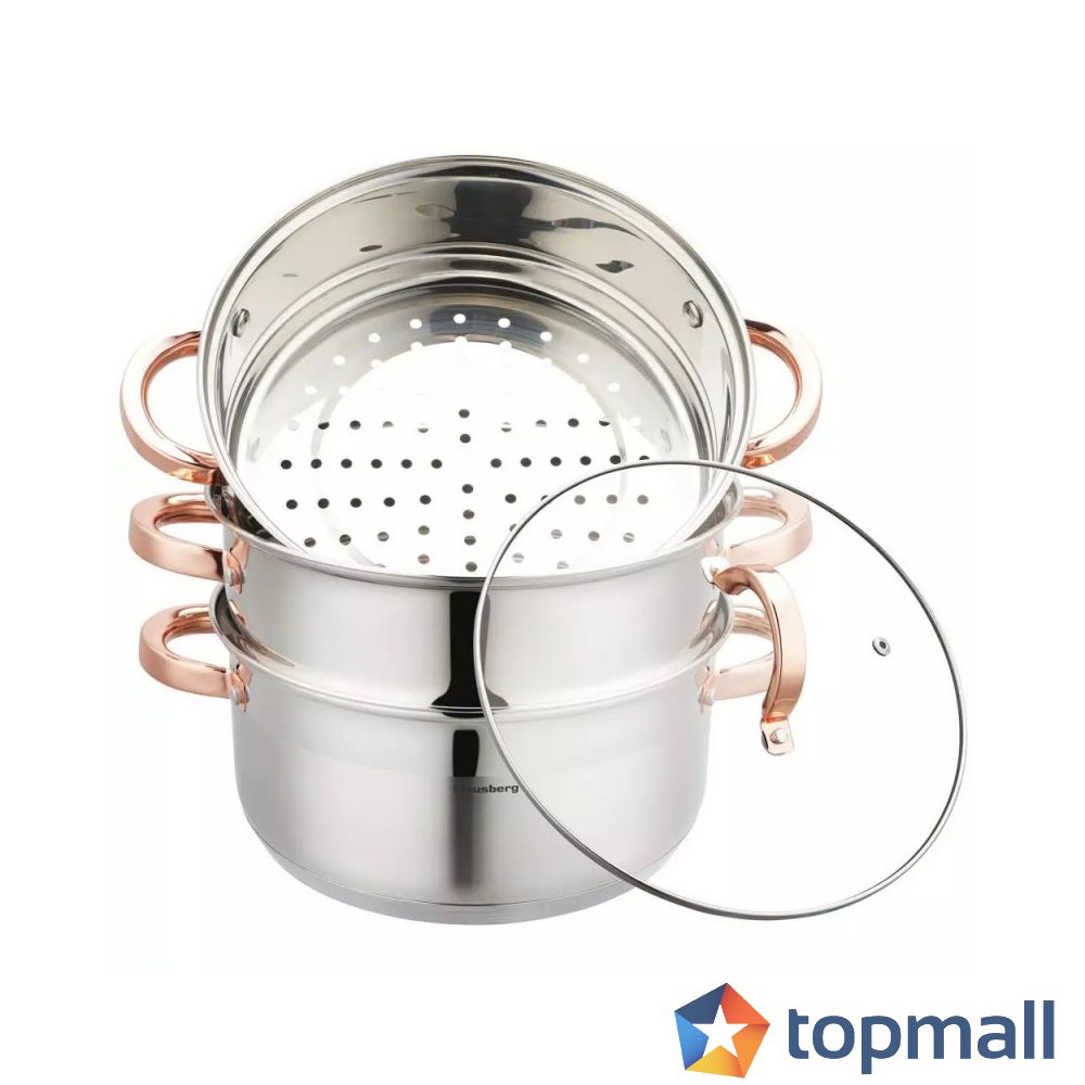 Тенджера за готвене на пара Klausberg KB 7735, 24 см, 5 литра, 4 части, Индукция, Инокс/Розово злато, (22196)