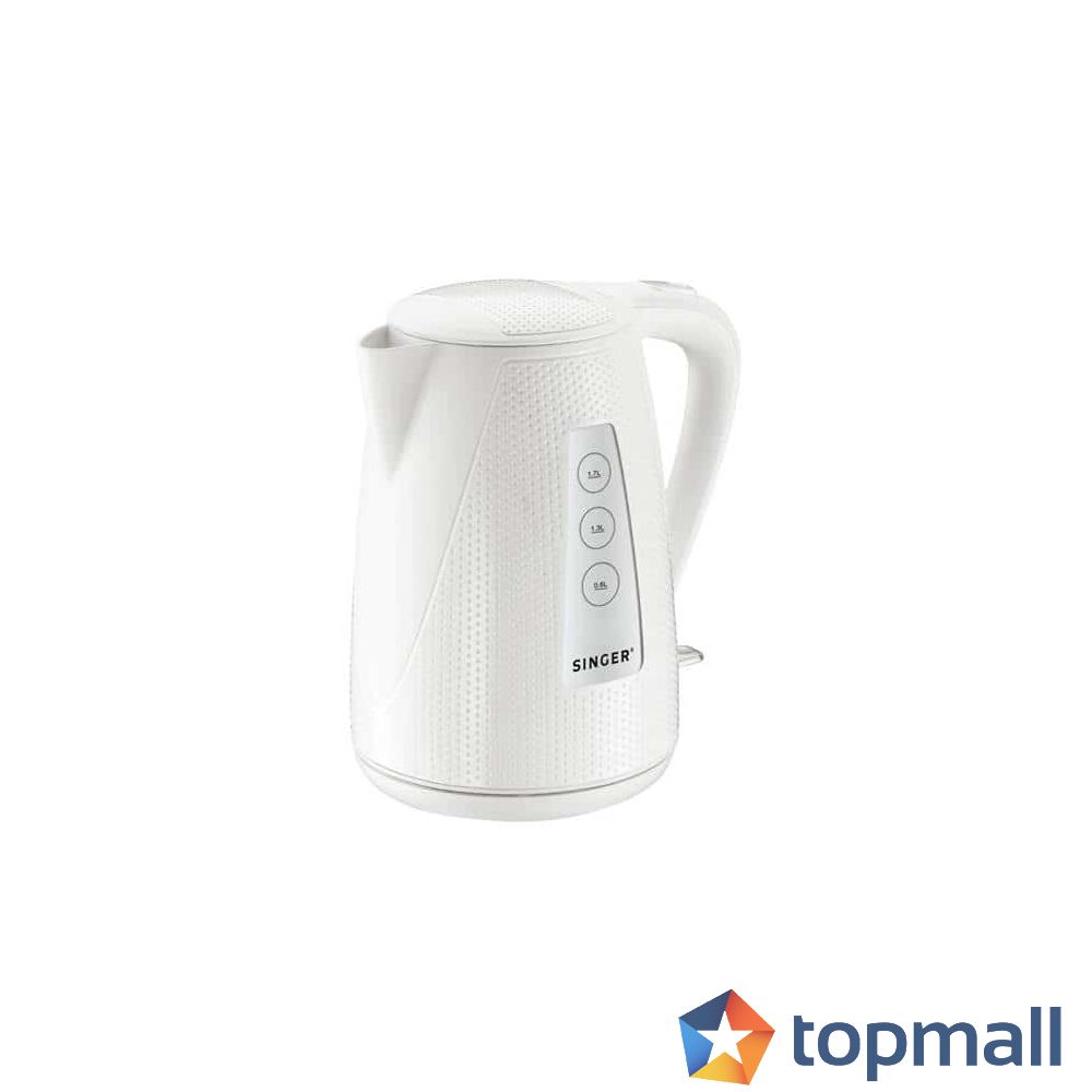 SINGER SWK-WH 800DOTS Термо кана бяла Мощност 1850W-2200WВместимост 1,7ltПокрит нагревателМиещ се филтърАвтоматично изключванеЗащита при оставане без водаВъртяща се на 360⁰ основаМясто за прибиране на кабелаПоказател ниво на водаСветлинен индикатор