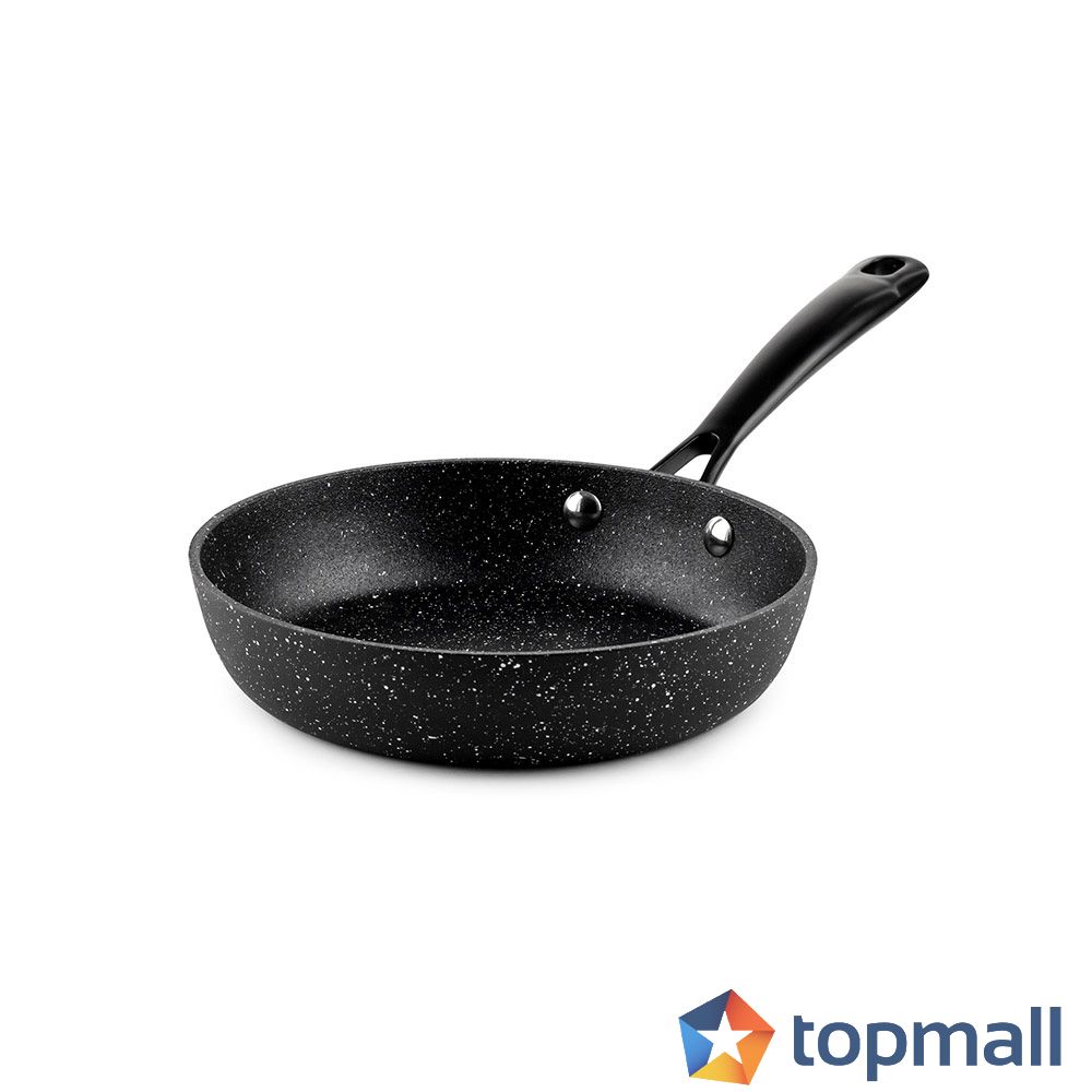Висококачествен кован алуминий - за бързо и равномерно награвяне на повърхността Дебелина на стената - 3.5 mm Дебелина на дъно - 4 mm Незалепващо покритие с мраморен ефект Дръжки от неръждаема стомана с PVD покритие в черно Подходящ за: електрически, газови, стъклокерамични, халогенни и индукционни котлони Подходящ за използване във фурна Подходящ за съдомиялна машина Подходящ за здравословно готвене без мазнина Лесно почистване