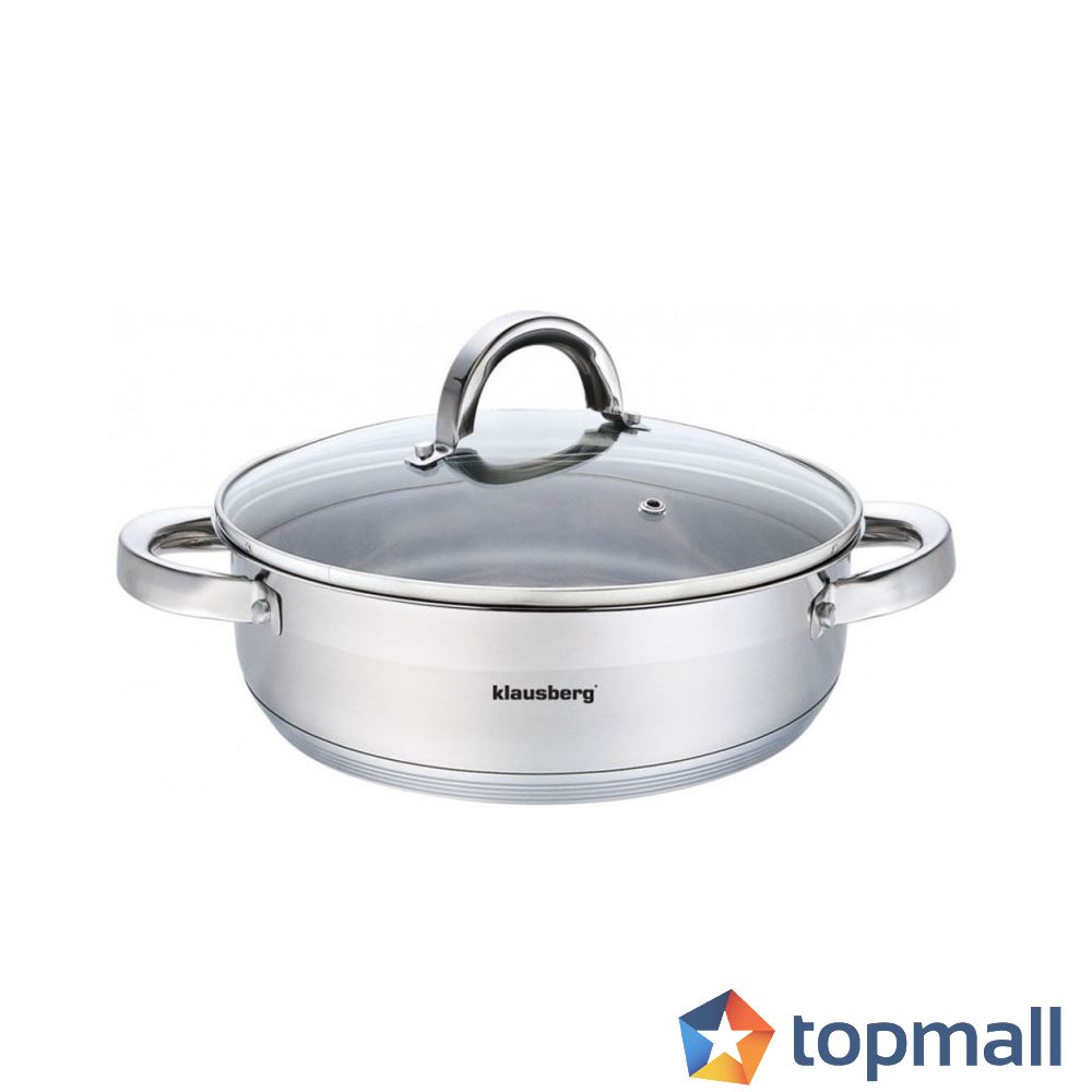 Тиган с дръжки и капак Klausberg KB 7173, 26 см, 4,6 литра, Дебело дъно, Инокс, (22179)
