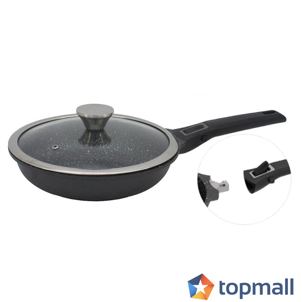 Тиган с капак и махаща се дръжка ZEPHYR ZP 4319 28NC, 28х6 см, Мраморно покритие, Индукция, Черен, (18690)