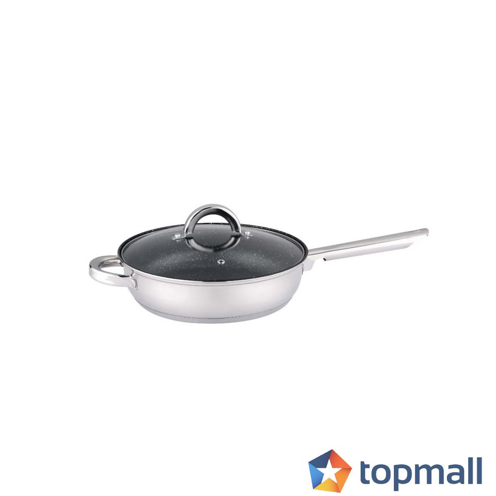 Тиган с капак Rosberg R51210L24TM, 24x6.5см, Мраморно покритие, Индукция, Дебел дъно, Инокс, (20315)