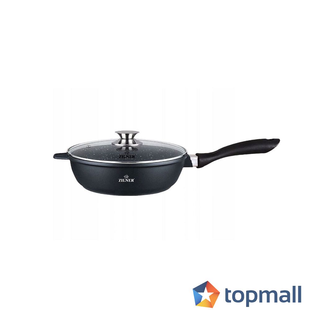 Тиган с капак ZILNER ZL 7028, 24х7 см, Керамично покритие, Индукция, Черен, (18710)