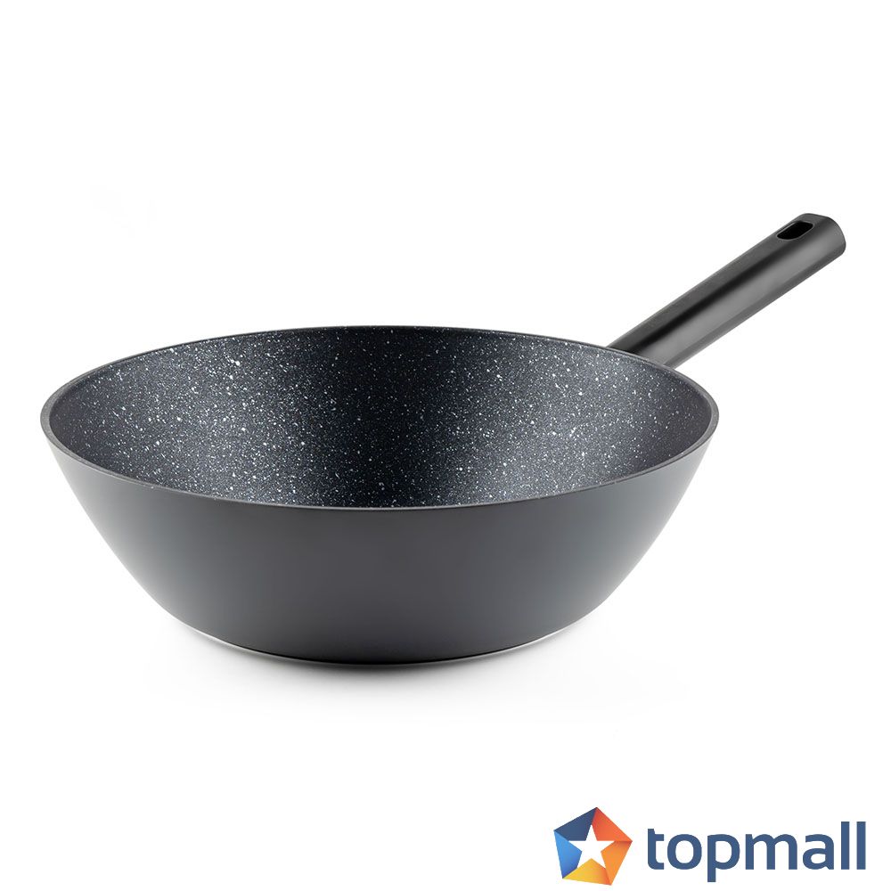 Висококачествен кован алуминий - за бързо и равномерно награвяне на повърхността Дебелина на стената - 4мм Дебелина на дъно - 4.5мм Незалепващо покритие с мраморен ефект Подходящ за: електрически, газови, стъклокерамични, халогенни и индукционни котлони Подходящ за съдомиялна машина Подходящ за здравословно готвене без мазнина Лесно почистване