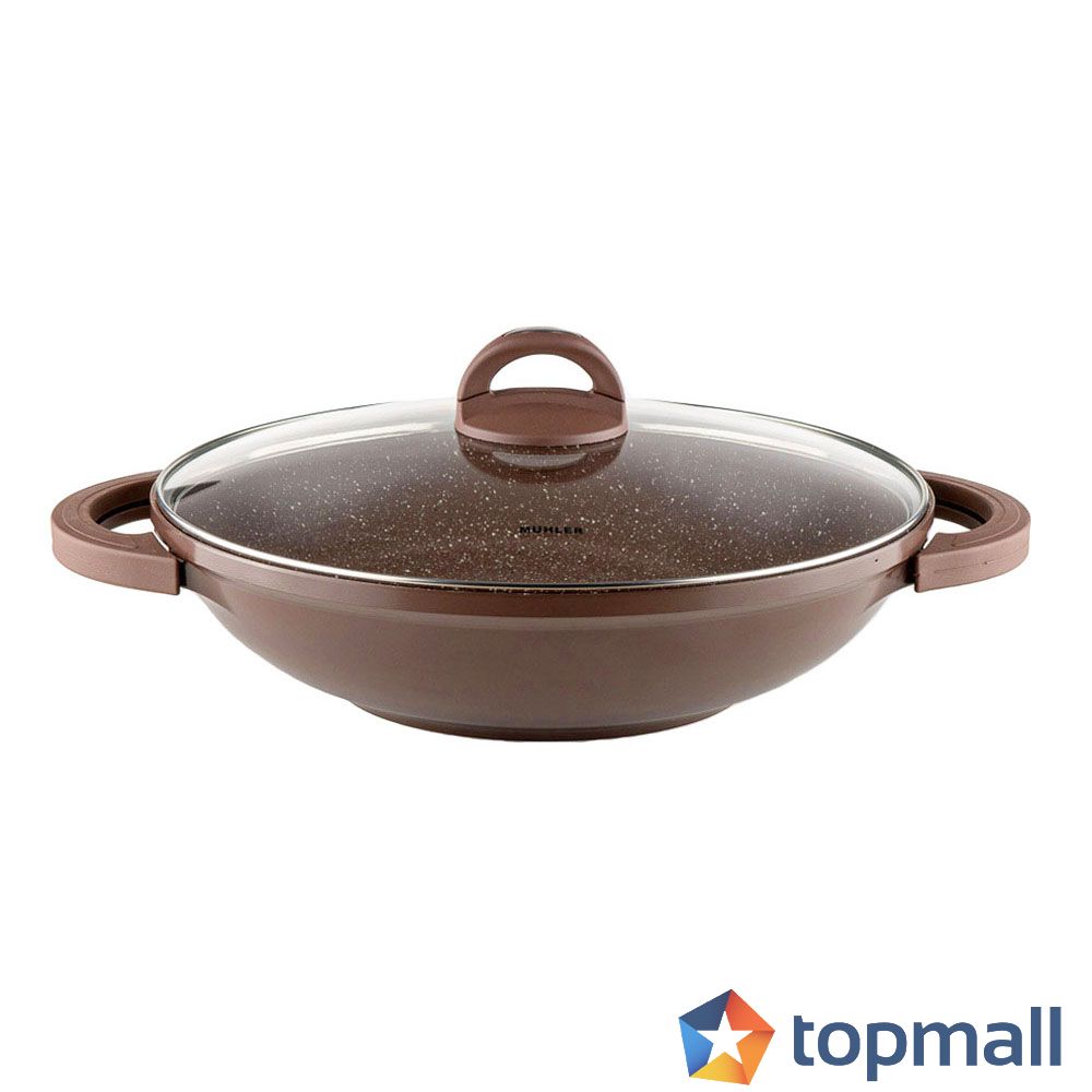 Тиган уок с капак Muhler Mia MR-3285M 32x8.5cm, 3.8L, шоколад, лят алуминий, (35942152)