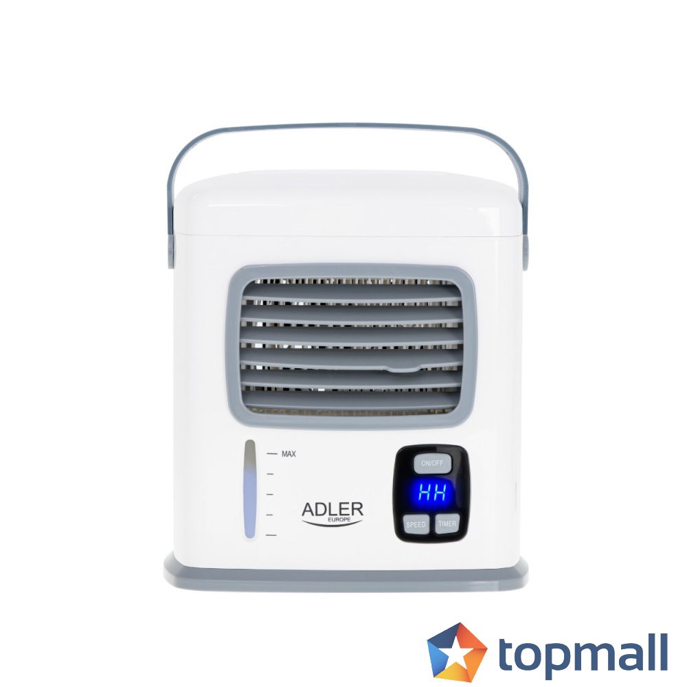 Въздушният охладител 3в1 Adler 7919 е компактно устройство, захранвано чрез USB или 4 x AA батерии, което ви позволява да охладите температура на вашето работно място. Устройството предлага 3 функции: охлаждане, пречиства и овлажнява въздуха. Трябва само да добавите вода в резервоара и да изберете една от двете скорости на вентилатора. Можете да зададете посоката на духане нагоре/надолу.