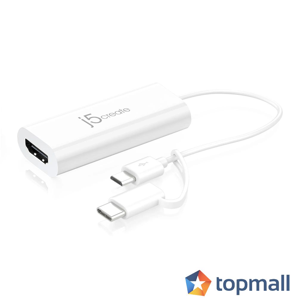 Видео адаптер j5create JUA165C, За андроид, USB-C/USB-B мъжко - HDMI женско, Бял, (35936678)