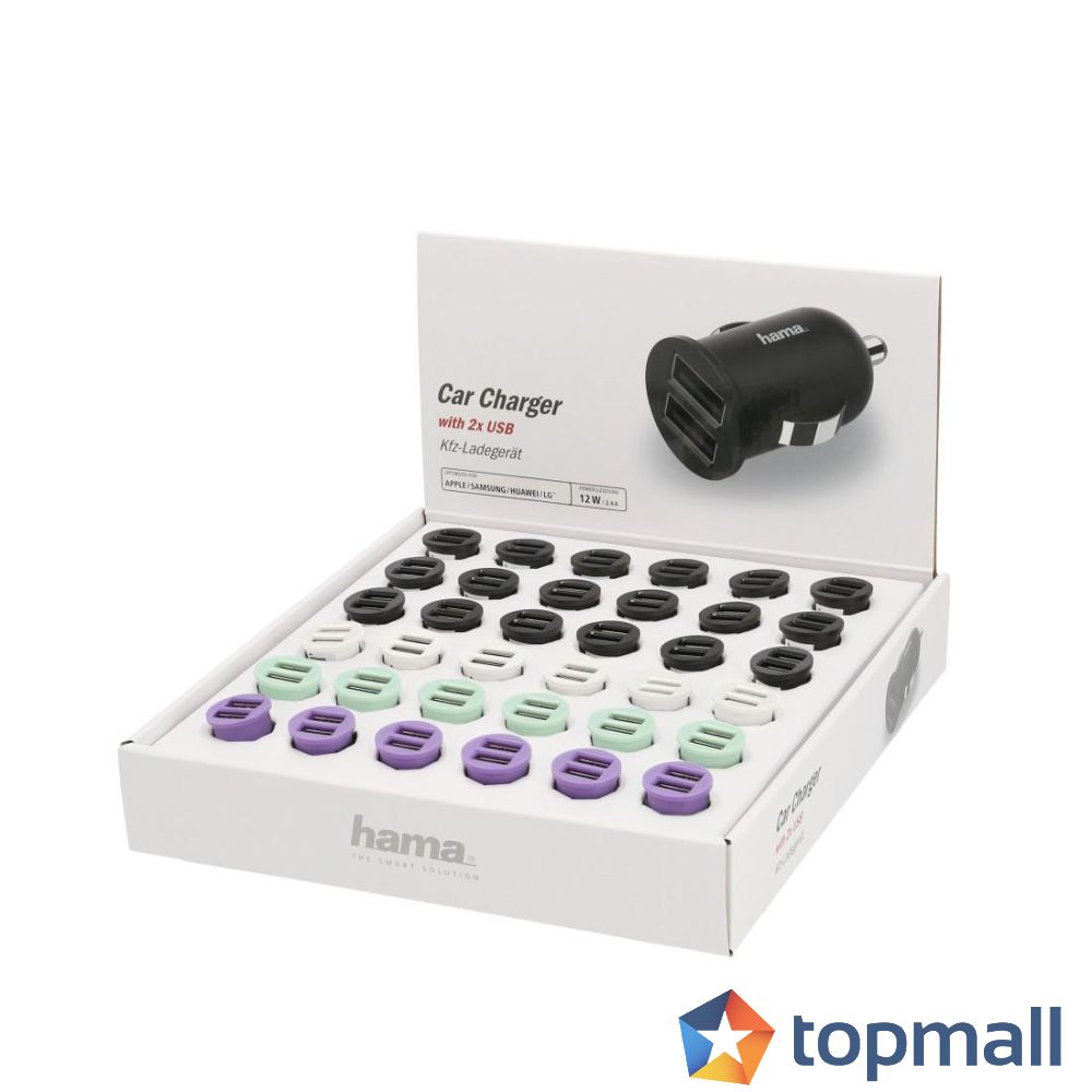 Зарядно за кола HAMA, 2 x USB, 2.4 A, Различни цветове, (35935279)